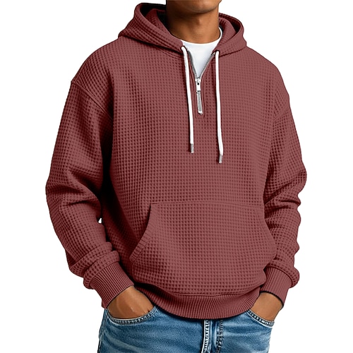 Per uomo Felpa con cappuccio Felpa con cappuccio a nido d'ape Maglione Aalbicocca Rosso bordeaux Nero Bianco Blu marino Con Cappuccio Semplice Tasca a marsupio Testurizzato Casuale Quotidiano Sport