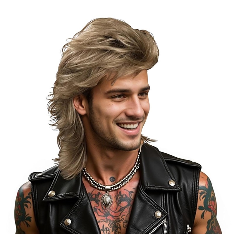 Men's 80s Rock Mullet Wig-Brown Retro Hairstyle for Cosplay, Parties Vintage Fashion