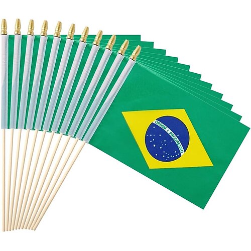 25er-Pack kleine brasilianische Flaggen, handliche Mini-Flaggen am Stab, 5x8 Zoll, für Fußball-Weltmeisterschaftsspiele, Sportveranstaltungen, Partydekorationen, jubelnde Fans