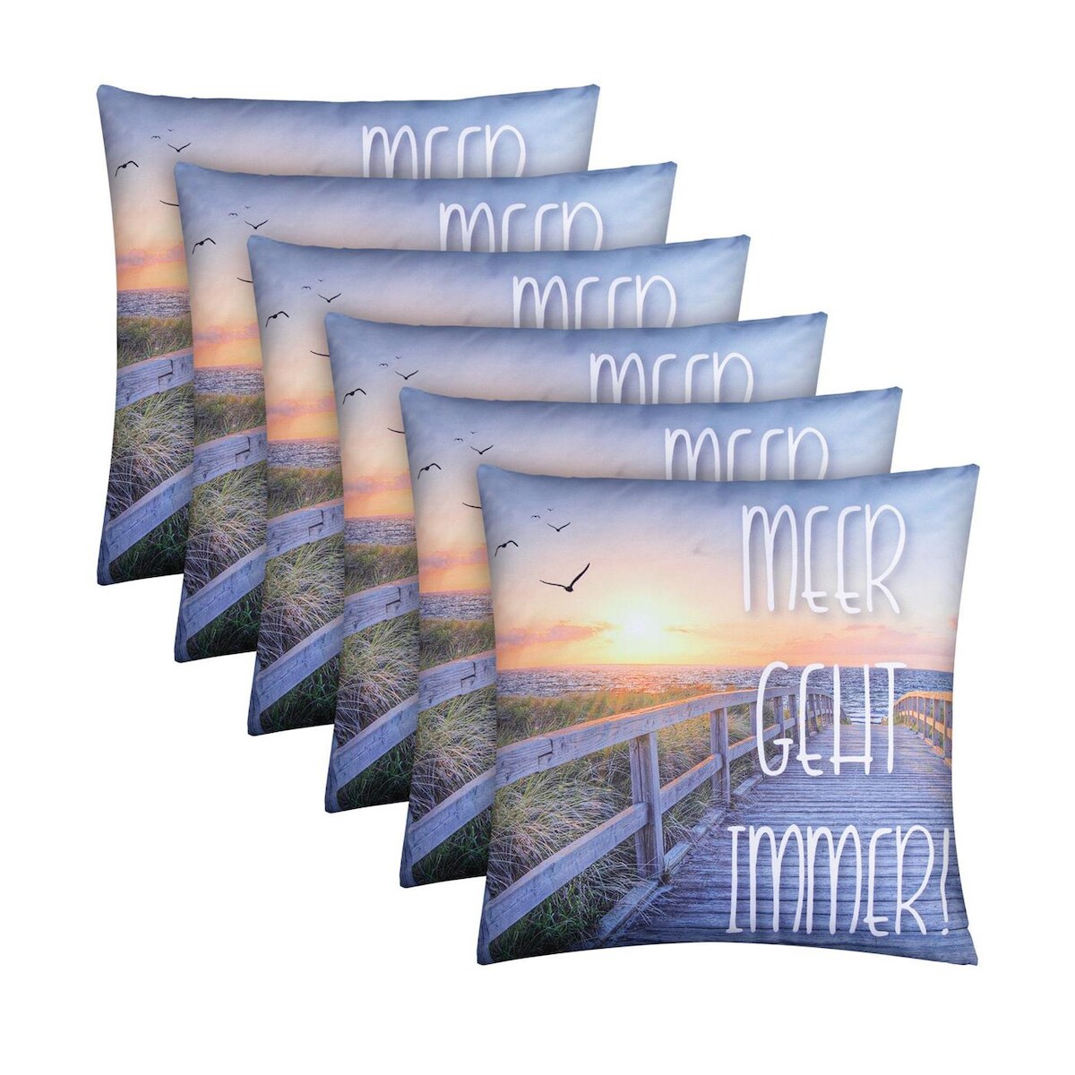 Bestlivings Outdoor Kissen mit Strandmotiv - Meer geht immer - 6 Stück ( 6er Pack )