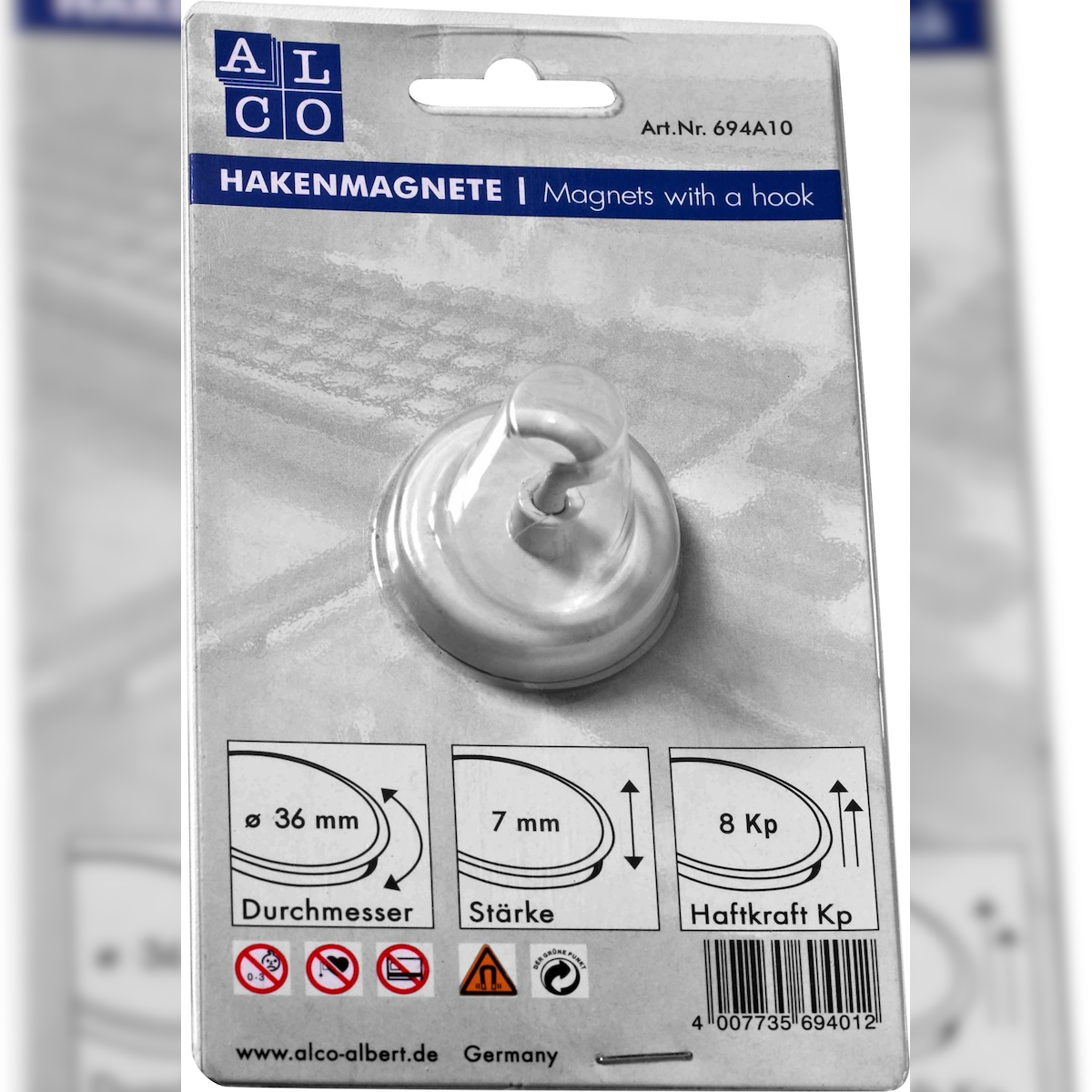 ALCO Hakenmagnet Metall 36mm TG 8000 g weiß Packung mit 10 Stück