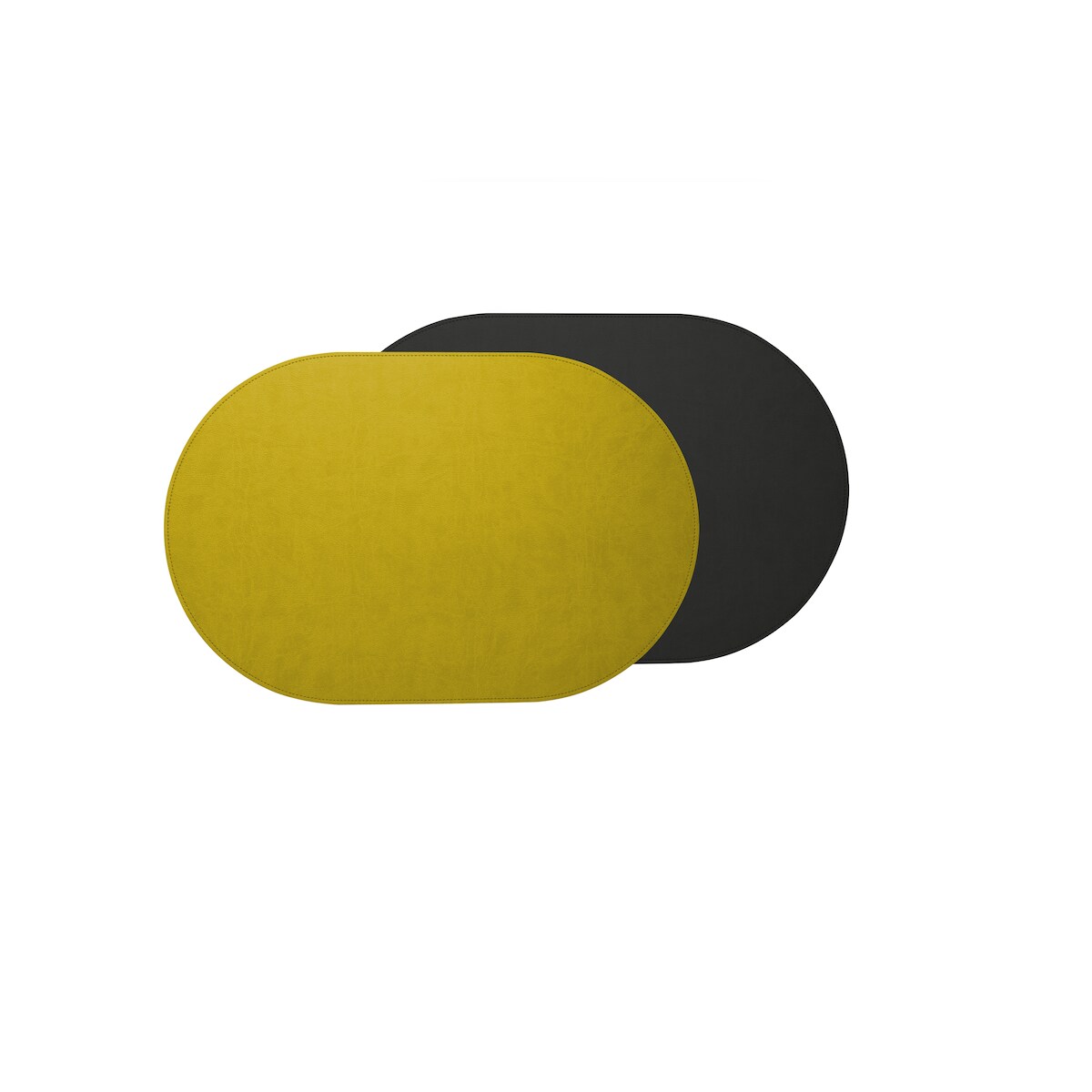 Stil Casa, Set mit 12 zweifarbigen Tischsets, laminiertes und genähtes Polyurethan, 27xh. 24 cm, Dollar-Finish, Farbe Ockergelb/Schwarz.