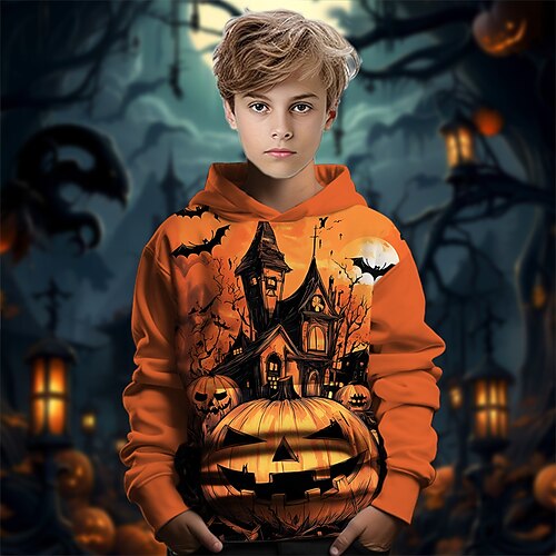 Halloween Jungen 3D Kürbis Kapuzensweatshirt Langarm Frühling Herbst Mode Streetwear Kinder 4-12 Jahre Mit Kapuze Outdoor Lässig Täglich Normale Passform