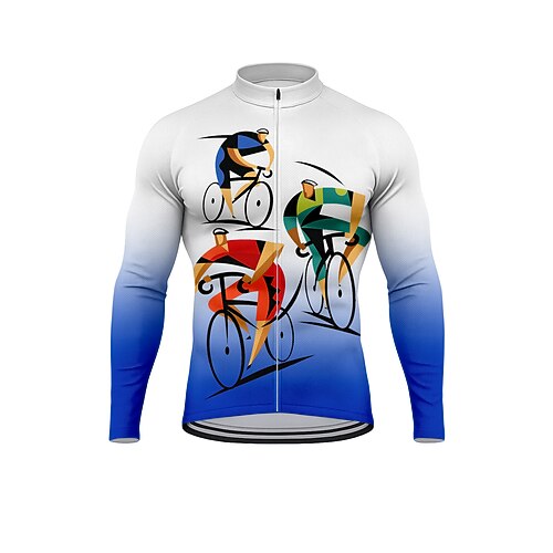 Herren Oberteile Radtrikot Grafik Geometrisch Fahhrad Langarm Fahhrad Trikot Oberteil mit 3 Gesäßtaschen Sonne Sonnenschutz Schnelltrocknend Reflektierende Streifen Sport Blau Gelb Rote Bekleidung
