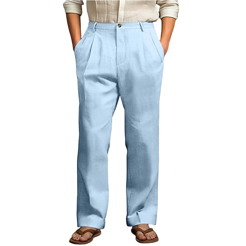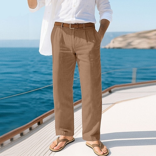 Per uomo Pantaloni di lino Pantaloni Pantaloni estivi Pantaloni da spiaggia A cordoncino Vita elastica Gamba dritta Liscio Comfort Traspirante Informale Giornaliero Per eventi Di tendenza Classico