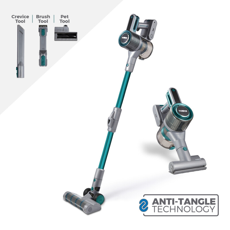 TOWER T513011PETS VL80 Cordless 3-in-1 Pole Vacuum Cleaner with Flexi Pole, HEPA 12 Filter & Anti-Tangle Floor Head, 1L Dust Tank, 29.6V Li-ion, Ocean Teal