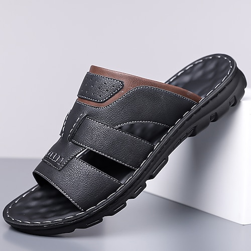 sandali da spiaggia da uomo in similpelle, facili da infilare, comodi per le calde giornate in spiaggia