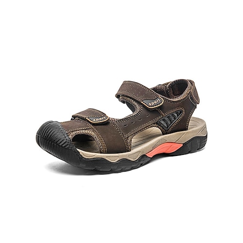 sandali da uomo con cinturino in velcro marrone, scarpe casual da esterno, perfette per le vacanze estive e le giornate in spiaggia