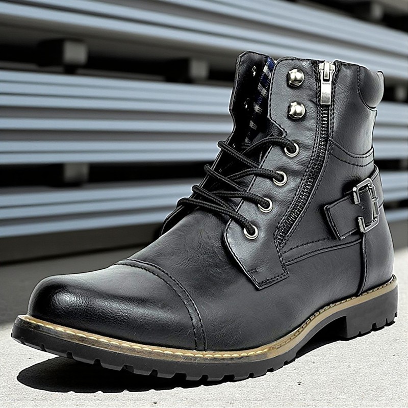 Men's Combat Boots with Side Zipper and Buckle - Casual Fashion Lace-Up Ankle Boots for Urban Streetwear and Everyday Outfits