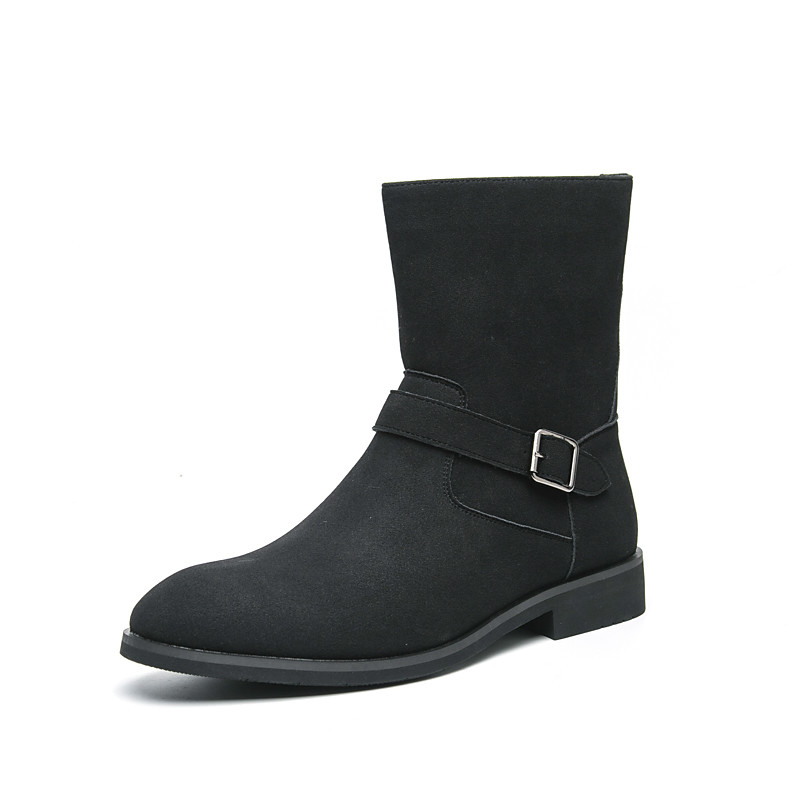 Men's Khaki Faux Suede Mid-Calf Boots with Side Buckle Straps, Retro Cowboy Style Boots for Casual Outfits and Party Occasions