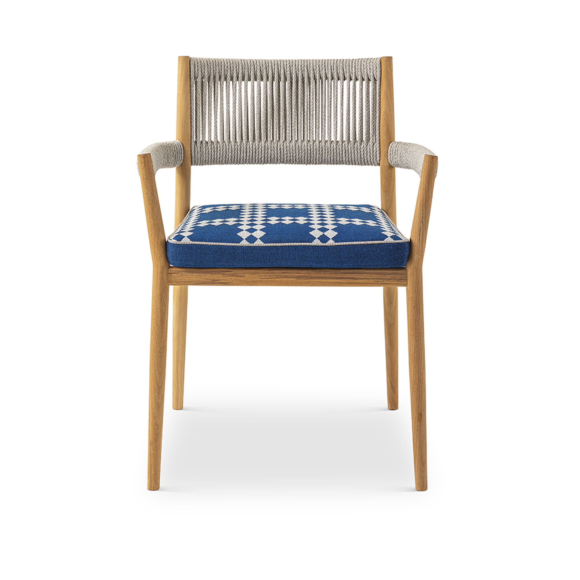 Cassina - 474 Dine Out stol, Natural Teak, Cush. Fab Cat. F Scacco Blue 13F060 - Matstolar utomhus - Rodolfo Dordoni - Blå - Trä/Textilmaterial/Syntetiskt/Skum/Plast