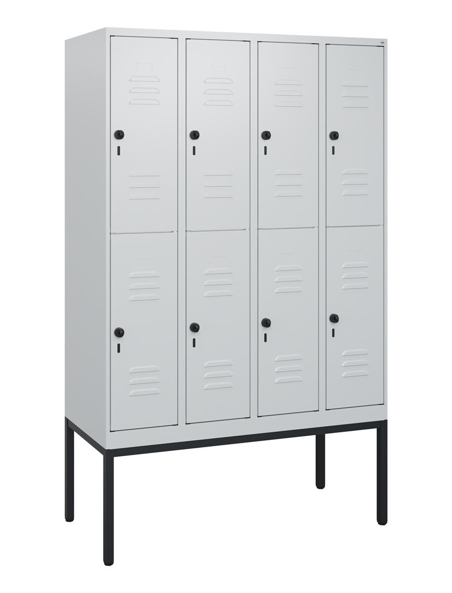 C+P Spind Classic PLUS, Füßen, 4 Abteile, HxBxT 195x120x50cm, Sicherheitsdrehriegel, Hellgrau/Hellgrau von PROREGAL
