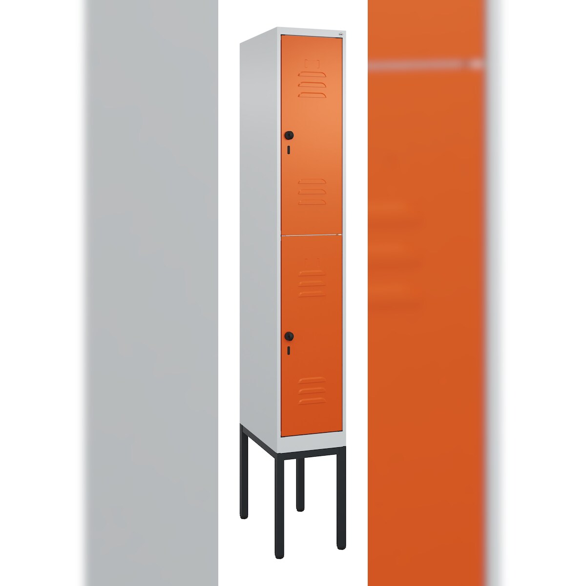 C+P Spind Classic PLUS, Füßen, 4 Abteile, HxBxT 195x50x50cm, Sicherheitsdrehriegel, Hellgrau/Reinorange von PROREGAL