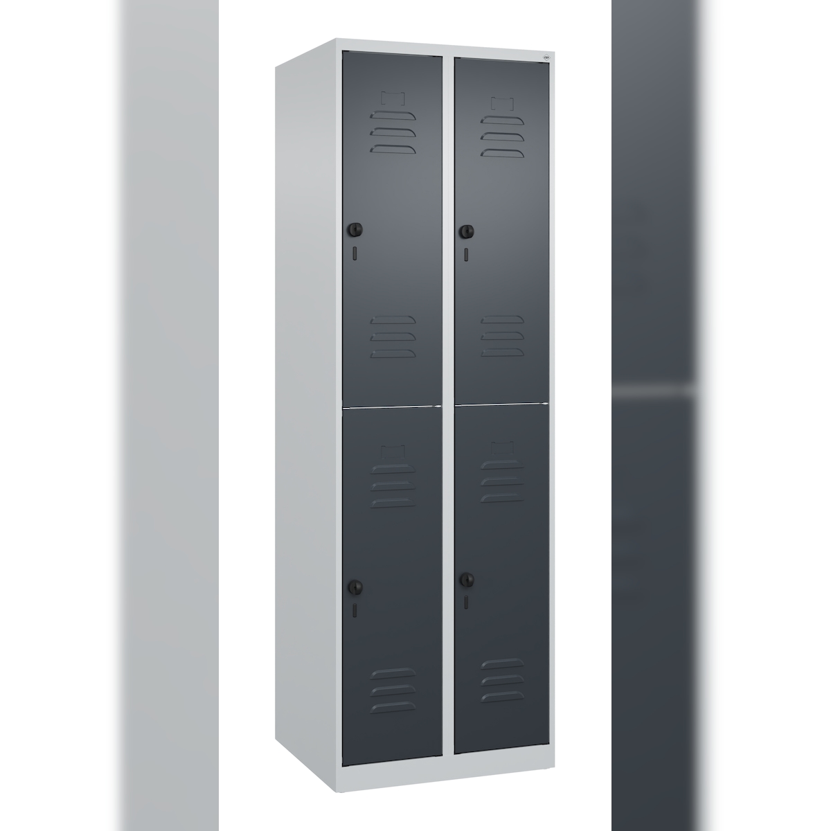 C+P Spind Classic PLUS, 4 Abteile, HxBxT 185x60x50cm, Sicherheitsdrehriegel, Hellgrau/Anthrazit von PROREGAL