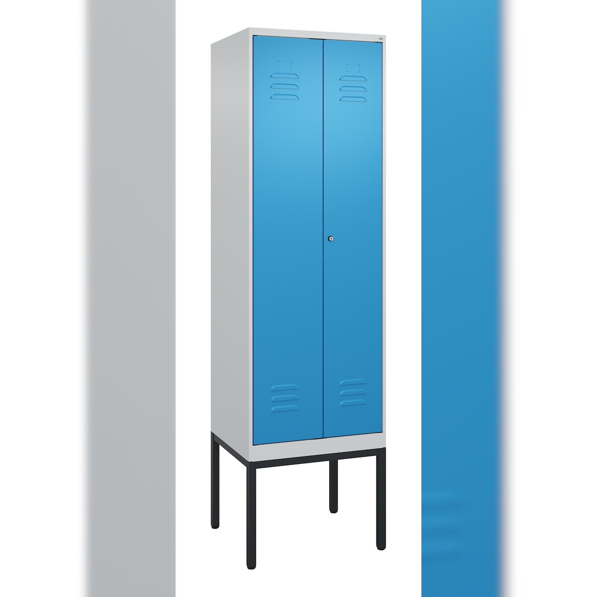 Z-Spind Classic PLUS, 2 Abteile, lichtgrau / enzianblau, B 600 mm, mit Bodensockel, Zylinderschloss C+P