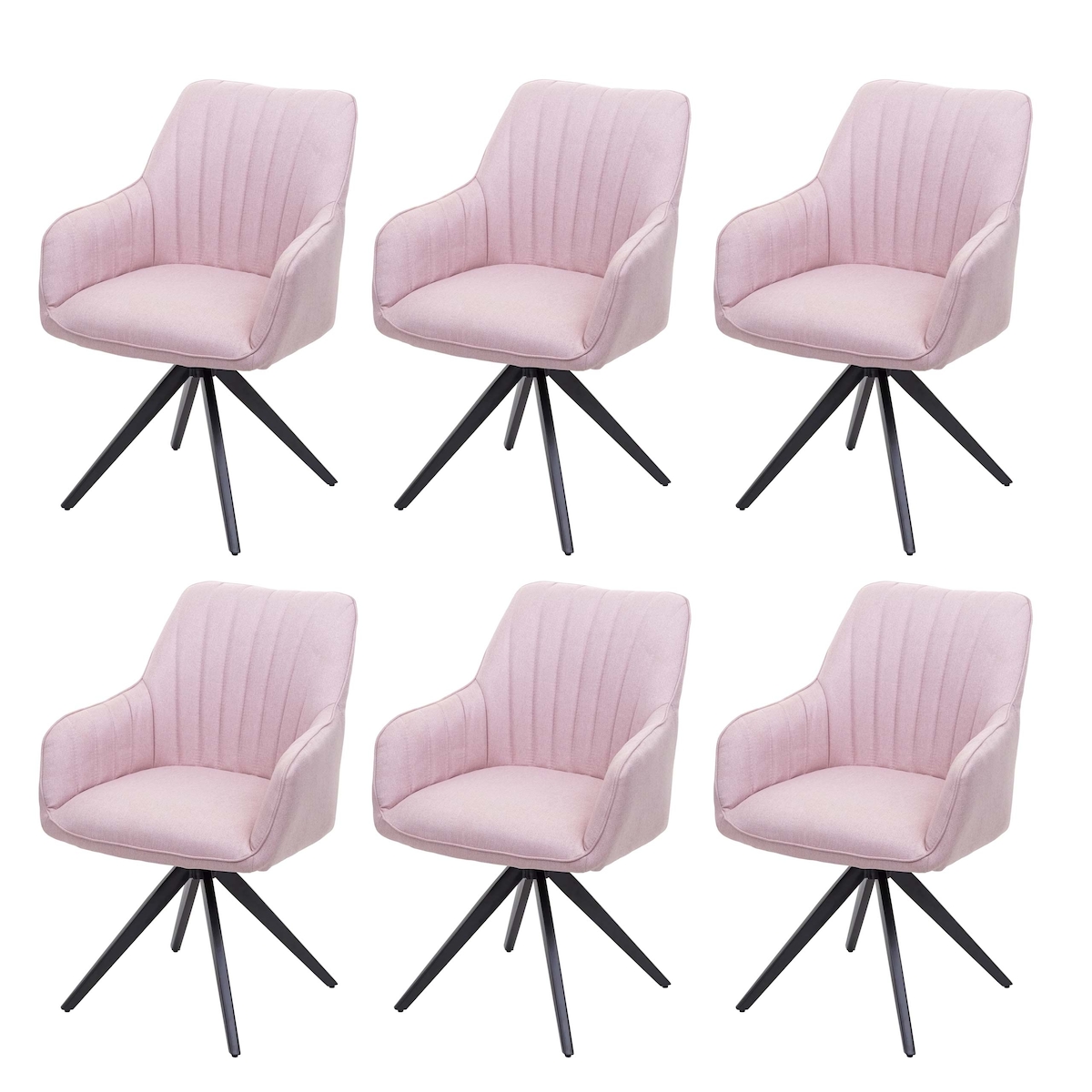 Mendler 6er-Set Esszimmerstuhl HWC-H73, Küchenstuhl Stuhl Armlehnstuhl, Retro Stahl Stoff/Textil ~ rosa