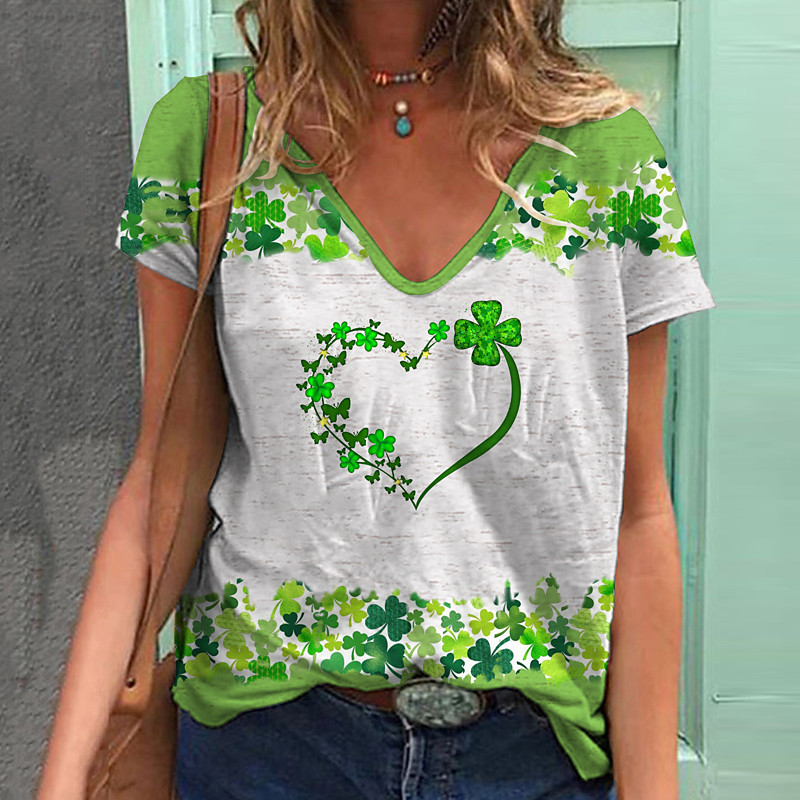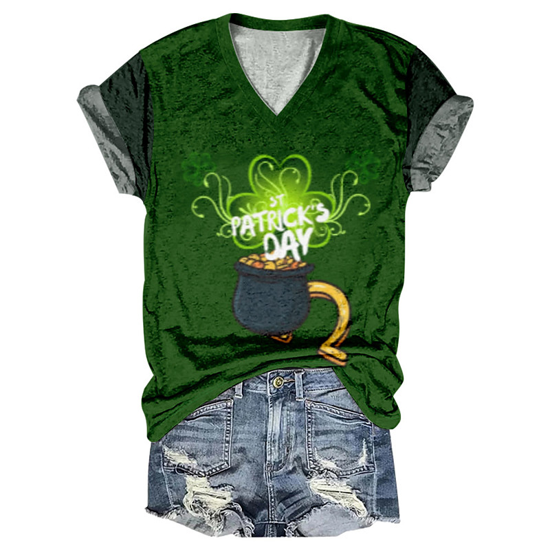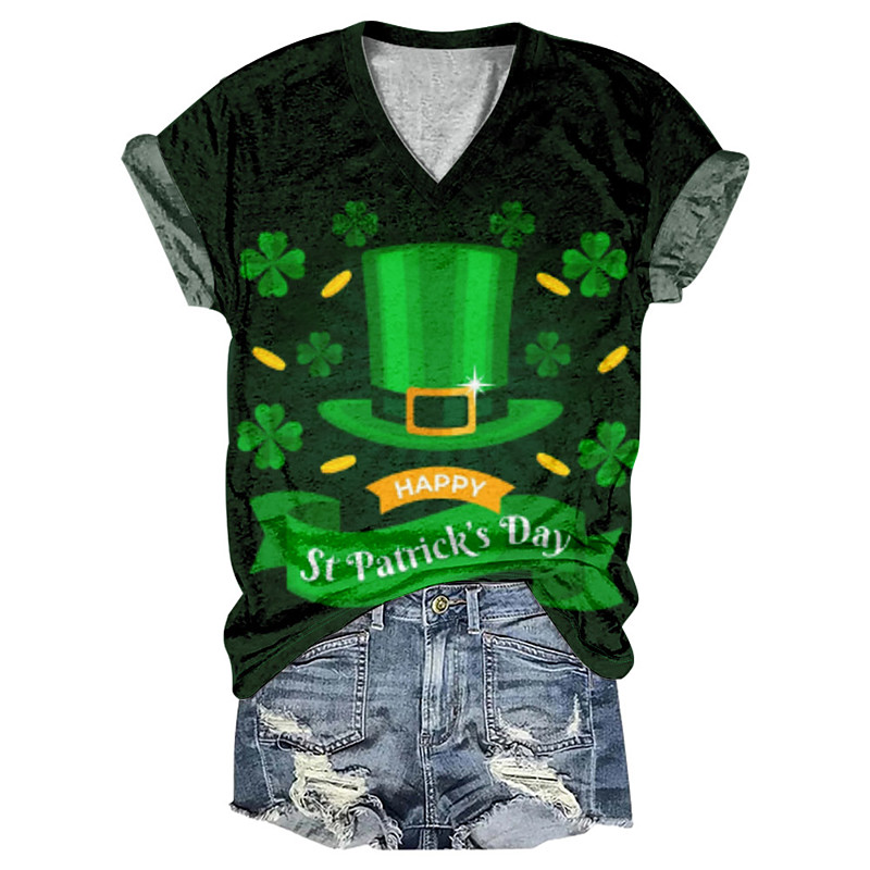 Women's T shirt Tee Shamrock St.Patrick's Day Casual Grass Green Light Green Army Green Print Short Sleeve Fashion V Neck Regular Fit Spring Summer