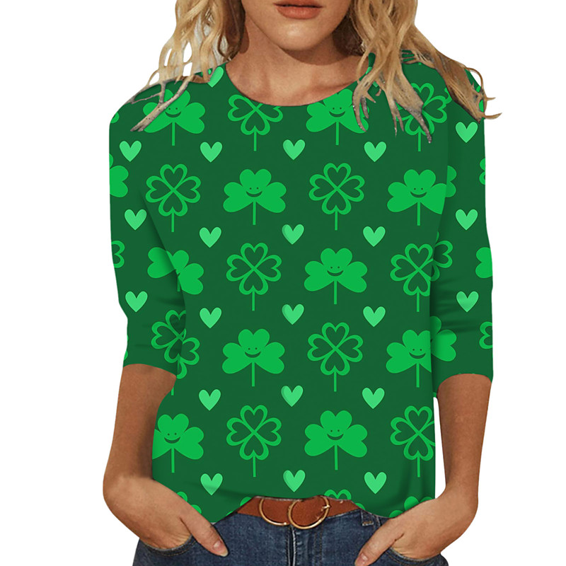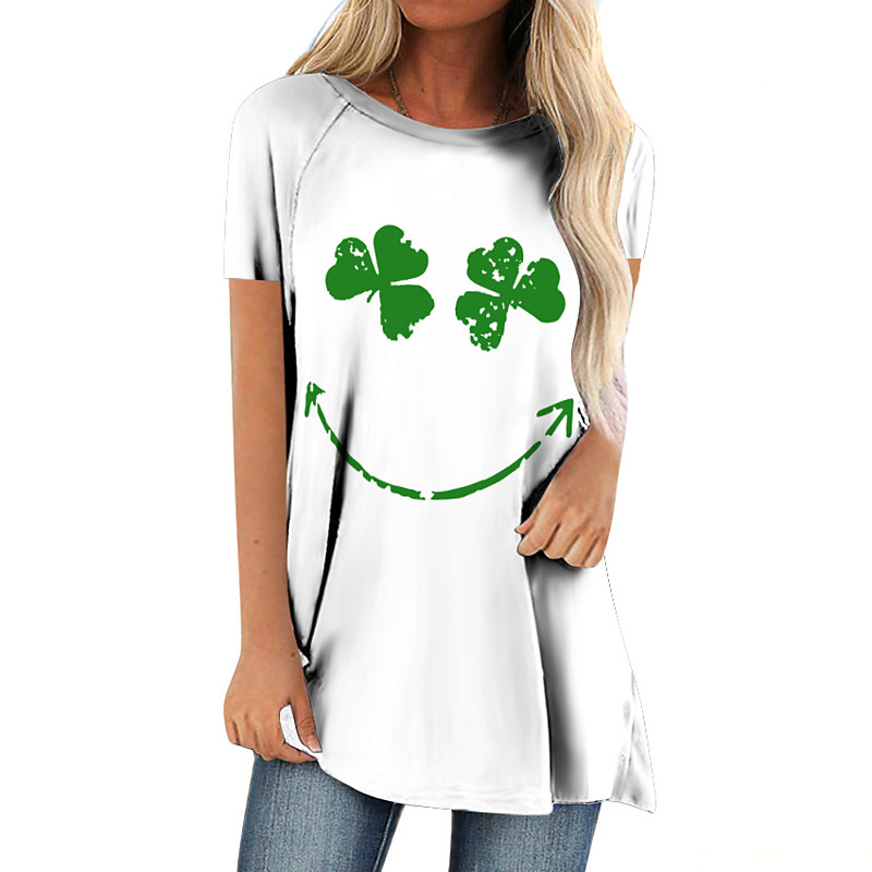 St. Paddy's Day St. Patrick's Day Women's T Shirt Leaf St. Patrick's Day Tunic Short Sleeve Round Neck Long Tops Holiday Weekend Print Grass Green White Light Green Army Green Green