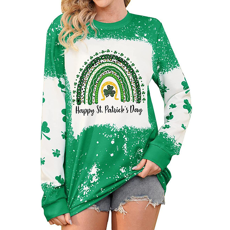 St. Paddy's Day St. Patrick's Day Women's T Shirt Shamrock Fashion Long Sleeve Round Neck Regular Tops Casual St.Patrick's Day Print Grass Green White Light Green Army Green Dark Green Spring Fall