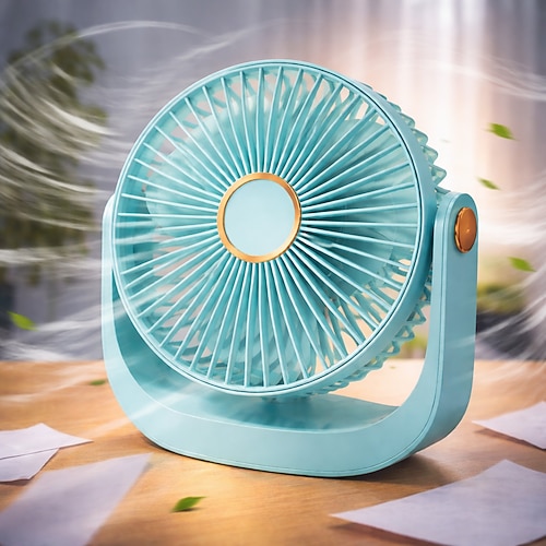 Tragbarer Mini-Ventilator mit abnehmbarer Abdeckung, ultraleiser Tischventilator, Luftzirkulator, 5 Geschwindigkeitsstufen 360° drehbarer, wiederaufladbarer USB-Ventilator mit warmem Nachtlicht für