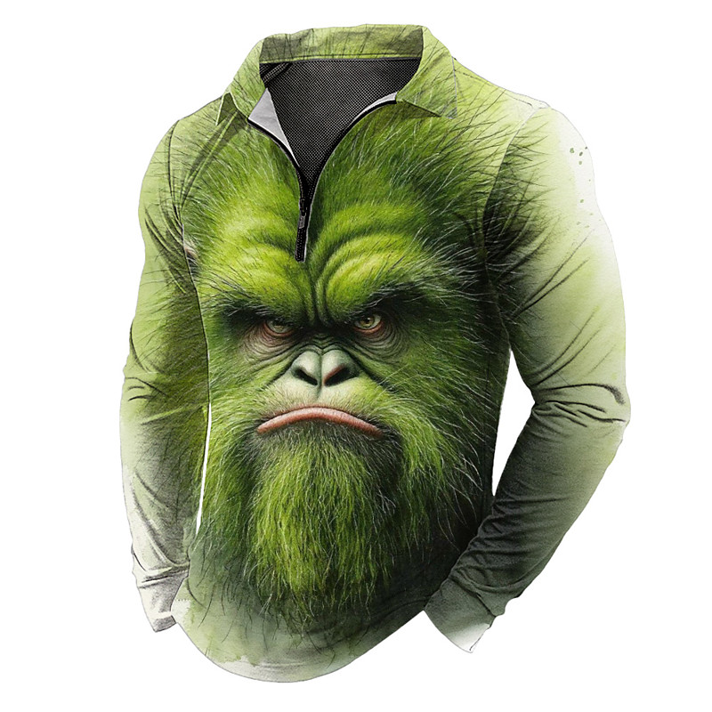 Men's Animal Zip Polo Shirts Long Sleeve Polo Shirts Lapel Casual Outdoor Festival Outfit 3D Print Spring Fall Winter Red Purple Green