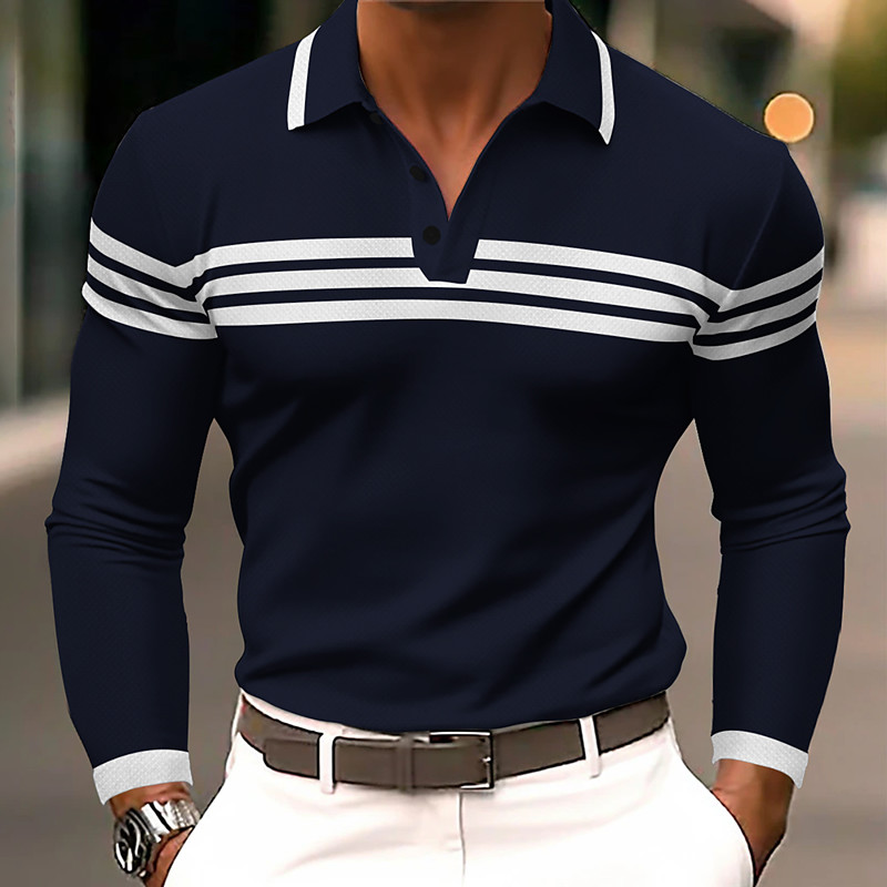 Men's Horizontal Stripes Polo Long Sleeve Polo Shirts Lapel Business Casual Athleisure Daily Wear 3D Print Buttons Spring Fall Black Red Green