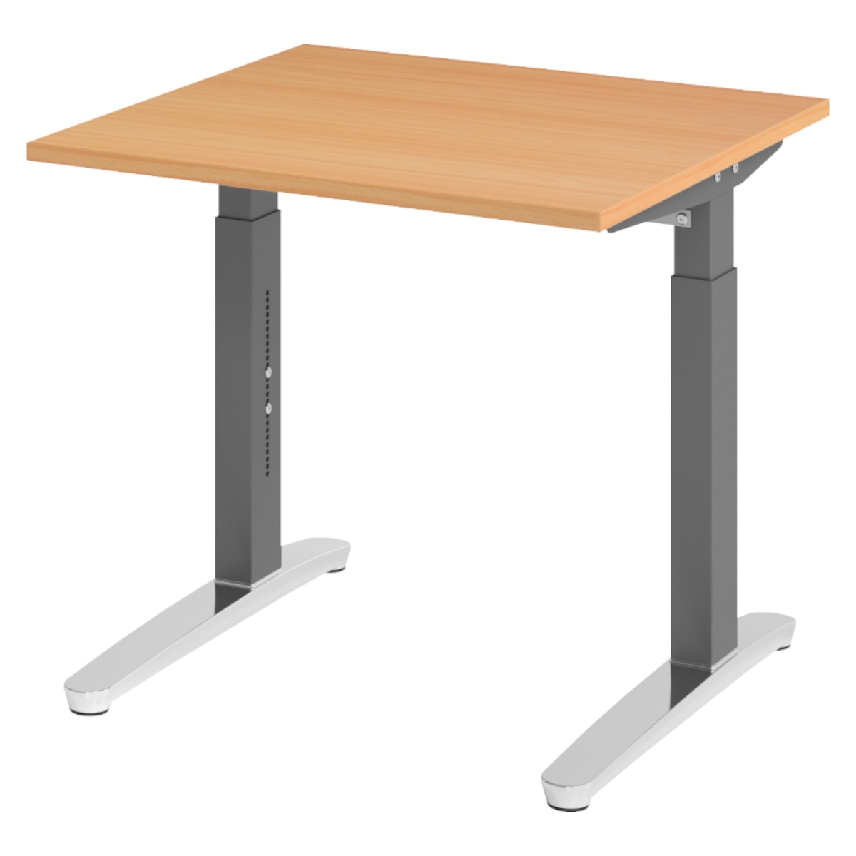 bümö manuell höhenverstellbarer Schreibtisch 80x80 in Buche, Gestell in graphit/alu - PC Tisch höhenverstellbar & klein, höhenverstellbarer Tisch