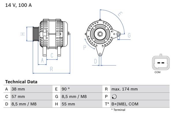 Laturi 12V 100A Bv psh 185.602.100.130 - suzuki jimny terrängbil täckt - OE 3140084A00000, 3140084A10, 3140084A11