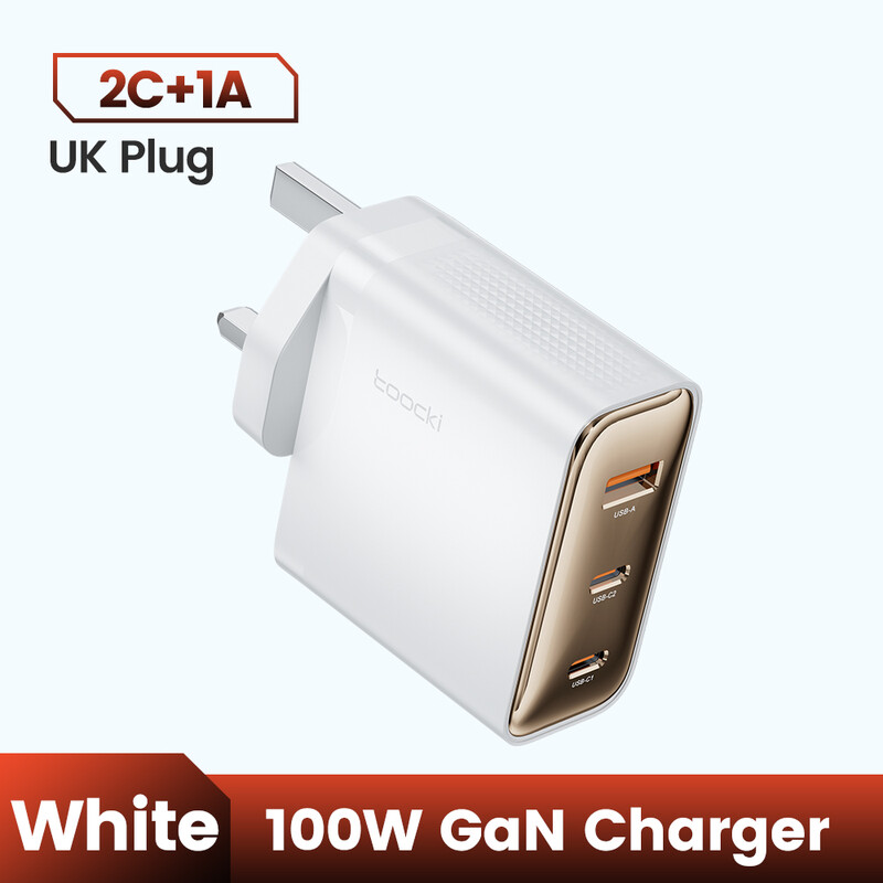 toocki 100W USB C Charger Block, 3-Port GaN Fast Wall Charger with Foldable Plug, PD3.0/QC3.0 Fast Charger for iPhone 17/16/13/14/15 Pro Max/Plus, MacBook Air/Pro, Dell XPS 13, Samsung Galaxy S24/S23 Series