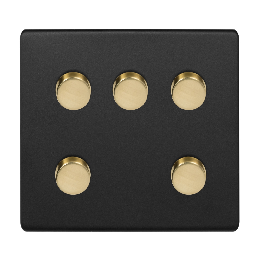 Soho Lighting Matt Black & Brushed Brass 5 Gang 2-Way Intelligent Dimmer 150W LED (300w Halogen/Incandescent)