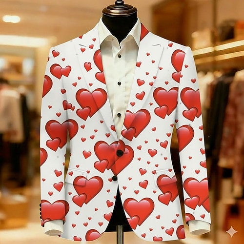 San Valentino Per uomo Cuore Giacca blazer Cappotto Confortevole Traspirante Artistico Casual Quotidiano Abbigliamento da sera Festival Stampa 3D Bottoni Multi-tasche Tutte le stagioni Dentellato