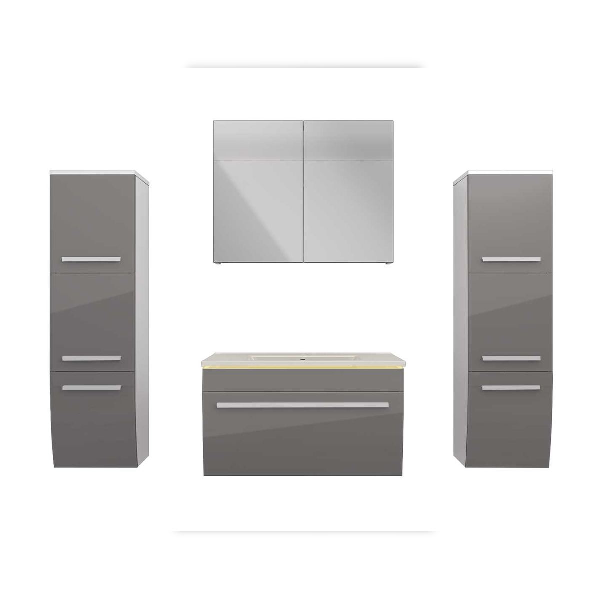 AcquaVapore Badmöbel Set Gently 3 V3 Weiß/Grau Badezimmermöbel Badspiegel Waschtisch 70 cm mit 1x 5W LED-Strahler