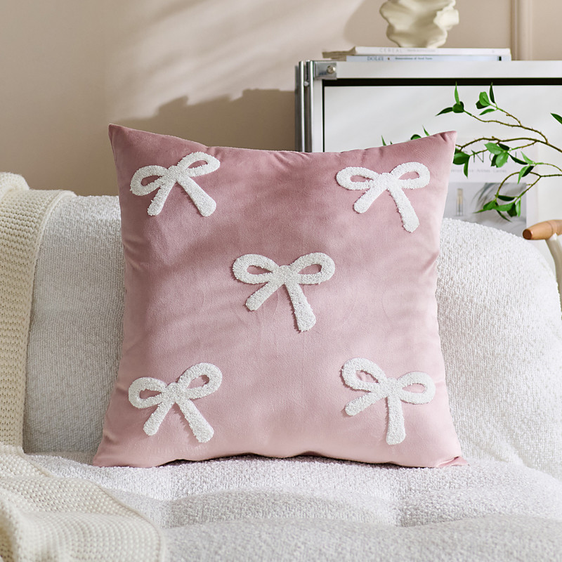 Valentine's Day Velvet Throw Pillow Cover, Cute Bowknot Cushion Case for Sofa, INS Style Decorative Pillowcase, Soft Plush Accent for Living Room and Bedroom Decor