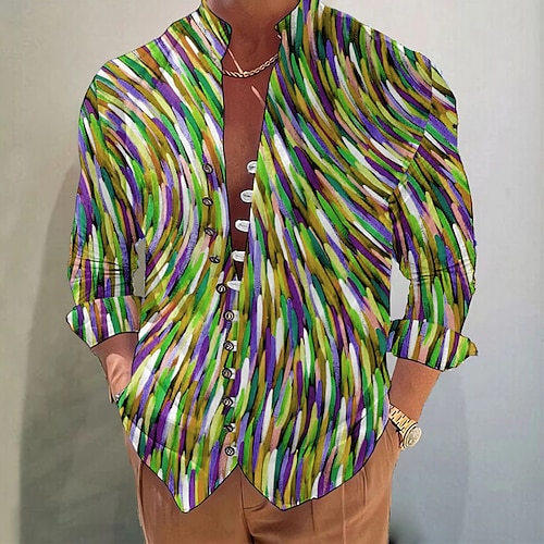 Per uomo Camicia Camicia elegante Sfumatura All'aperto Casuale Blu Viola Marrone Verde Manica Lunga Collo alla coreana Estate Primavera Abbigliamento Stampato