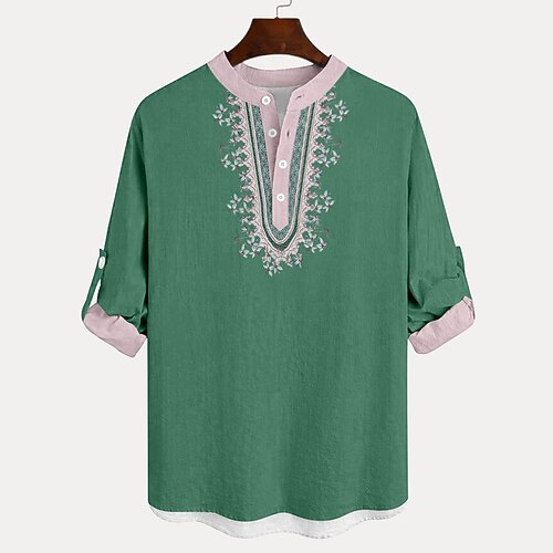 Per uomo Etnico Camicia Camicia di lino Manica Lunga Moda Streetwear Designer All'aperto Quotidiano Uscire Primavera Estate Collo alla coreana Stampato Blu Nero Nero Giallo Verde chiaro Rosa
