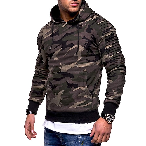 Per uomo Felpa con cappuccio Felpa con cappuccio tattica Nero Grigio chiaro Grigio scuro Verde mimetico Con Cappuccio Semplice Pieghettato Sport Outdoor Quotidiano Abbigliamento casual alla moda