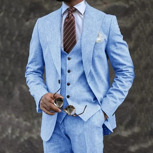 Herren Blazer Weste Anzughose Blazerjacke Anzüge Geschäft Arbeit Party Elegant Mode Frühling Herbst Leinen Einfarbig 3 Teile Einreihig Blazer Blau Dunkelgrau Hellgrün Rosa