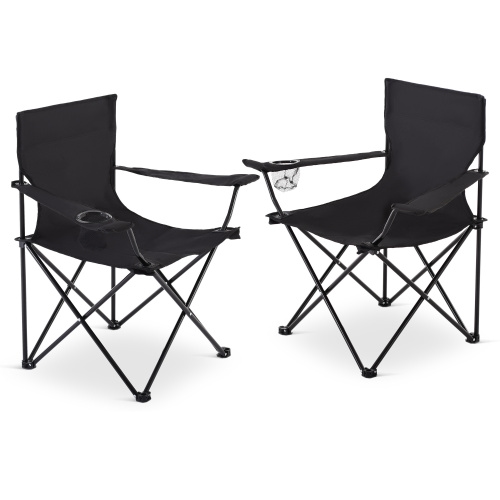 Faltstuhl 2er-Set, Anglerstuhl mit Getränkehalter, faltbar, mit Tragetasche, bequem, klappbar und belastbar bis 120 kg Schwarz, Raburg Joe