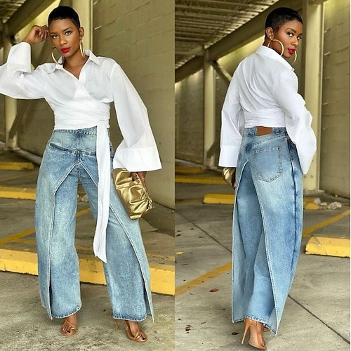 Per donna Gamba larga Vacanza Essenziale Lunghezza intera Vita Alta Inelastico Quotidiano Blu Primavera Vestibilità comoda