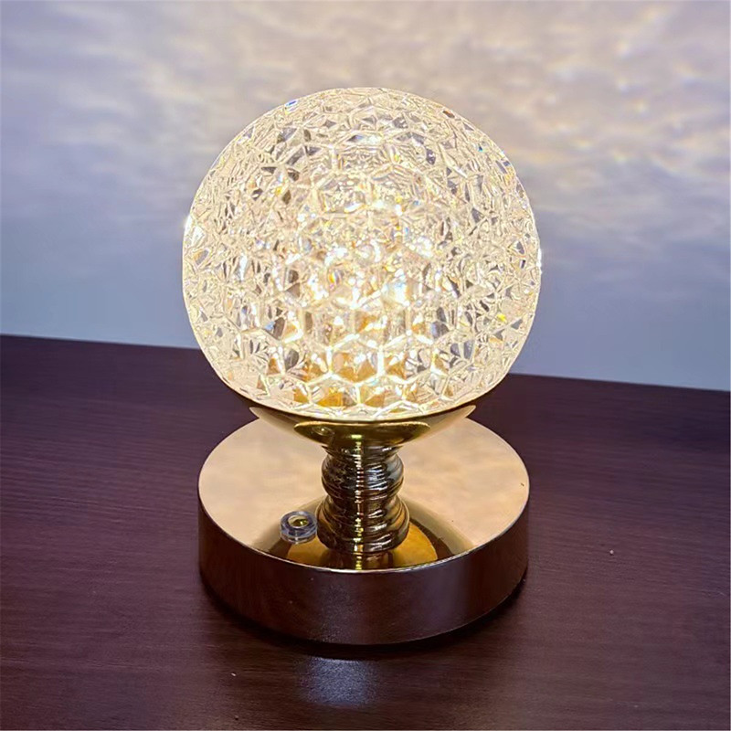 Usb Charging Tri Color Dimming Acrylic Crystal Ball Table Lamp Hotel Bar Creative Decoration Night Light Bedroom Bedside High-End Atmosphere Table Lamp 1PC