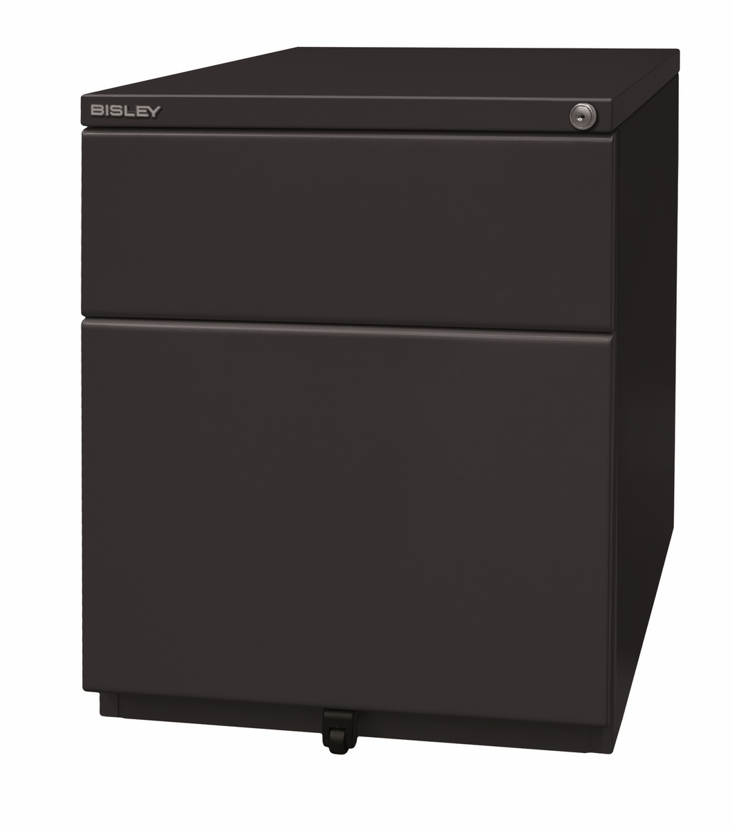 BISLEY OBA Rollcontainer mit 2 Schüben aus Metall abschließbar in schwarz - Bürocontainer mit Universalschublade & Hängeregistratur, Container mit