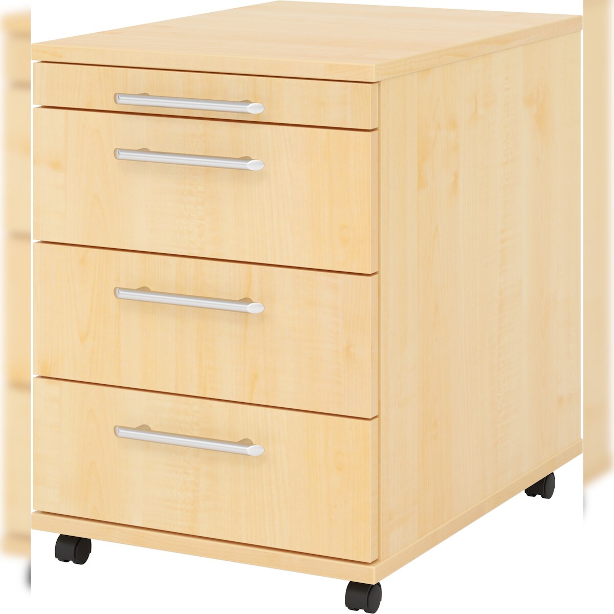 bümö basic Rollcontainer mit Schubladen, Container aus Holz in Ahorn - Rollwagen für's Büro als Schreibtisch Unterschrank, Bürocontainer od.