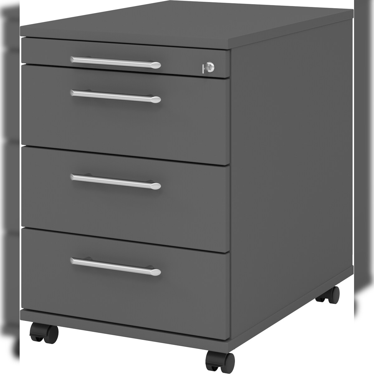 bümö Rollcontainer mit Schubladen, Container abschließbar aus Holz in graphit - Rollwagen für's Büro als Schreibtisch Unterschrank, Bürocontainer od.