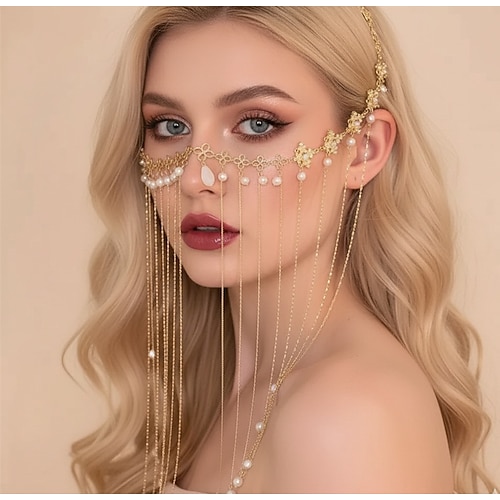 Accessori Samba del Carnevale di Rio Gioielli per il Viso in Stile Bohemien - Catena per Capelli con Charms a Perle e Gocce di Frangia Copricapo per Ballo della Pancia al Festival Costume per