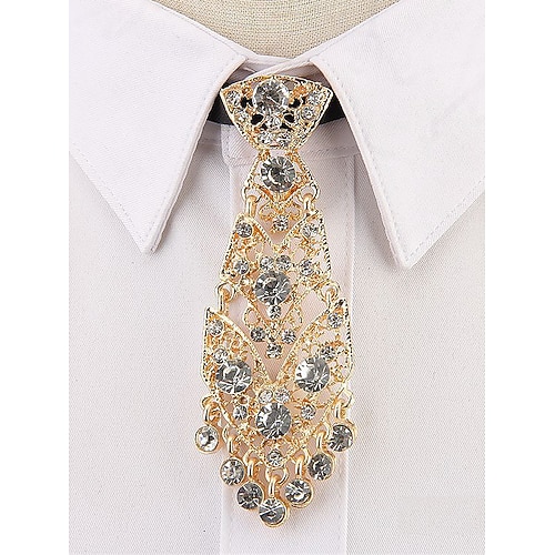 cravatta corta da uomo in metallo dorato – accessorio formale impreziosito da strass per matrimoni, ospiti ed eventi speciali