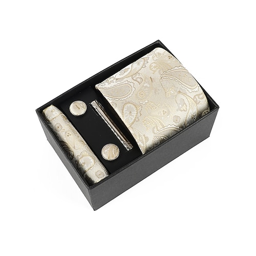 set regalo da uomo con cravatta paisley in poliestere, gemelli, fazzoletto da taschino e fermacravatta, perfetto per matrimoni e regali