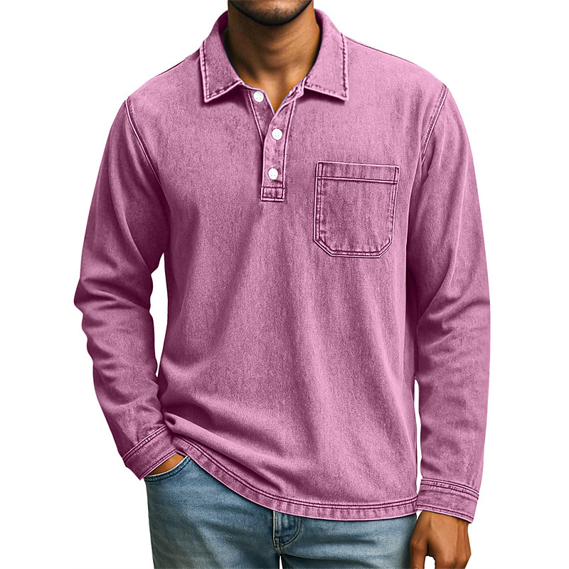 Men's Golf Shirt Golf Polos Shirts Work Casual Lapel Long Sleeve Basic Modern Plain Pocket Buttons Spring Fall Regular Fit Deep Green Black Light Green Dark Blue Pink Blue Golf Shirt