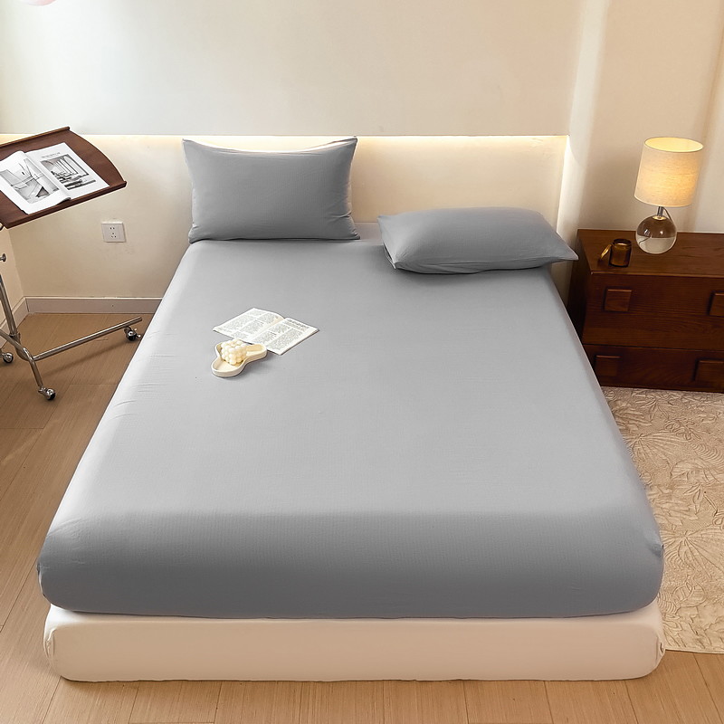 1Pc 100% Cotton Bed Fitted Sheet Solid Color Bed Cover Elastic Mattress Cover Single And Double Deluxe Double Bed Cover Multiple Sizes Available