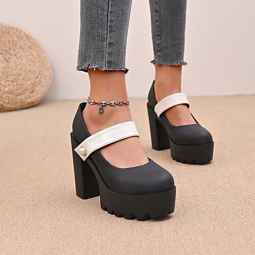Per donna Quotidiano Tacco grosso Punta Tonda Moda Finta Pelle Cinturino alla Caviglia Arancione e nero Nero Rosso chiaro