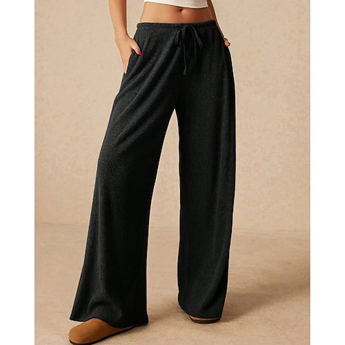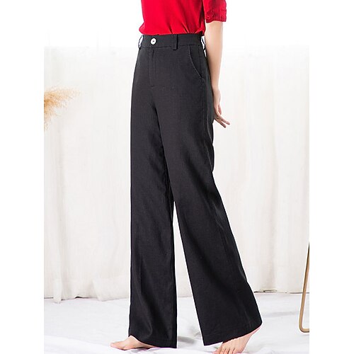 Per donna Gamba larga Chinos Casual Lunghezza al polpaccio Naturale Semplice Tasche Laterali Gamba larga Comodo Traspirabilità Casual Quotidiano Aalbicocca Nero Rosa Vino Primavera Autunno